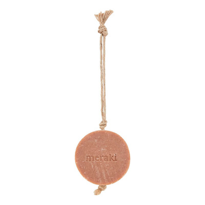 Forkæl dine hænder med de blødgørende og dekorative, faste håndsæber fra Meraki. Denne fine, terracottafarvede variant er baseret på mild, forsæbet palmeolie, mangostanekstrakt og nærende olivenolie, som renser hænderne uden at virke udtørrende. Sæben er desuden udstyret med en praktisk snor, så den kan opbevares hængende på badeværelset.