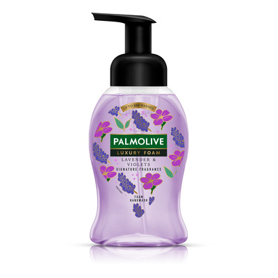 Palmolive Foam Håndsæbe Lavender & Violets er en skummende håndsæbe med en blid duft af lavendel og viol. Den luftige skum dannes direkte fra pumpen og gør håndvask nem og behagelig uden dryp. Håndsæben er vegansk og fremstillet med 95% ingredienser af naturlig oprindelse samt en 95% biologisk nedbrydelig formel.