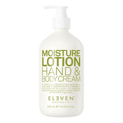 Eleven Australia Moisture Hand & Body Cream er en plejende hverdagscreme, der giver øjeblikkelig fugt og næring til tør hud. Kokosolie og E-vitamin hjælper med at beskytte mod frie radikaler, mens økologisk agurkeekstrakt og aloe vera tilfører fugt og virker beroligende. Kamilleekstrakt og ricinusfrøolie lindrer hudens udsatte områder og efterlader den blød og smidig.
