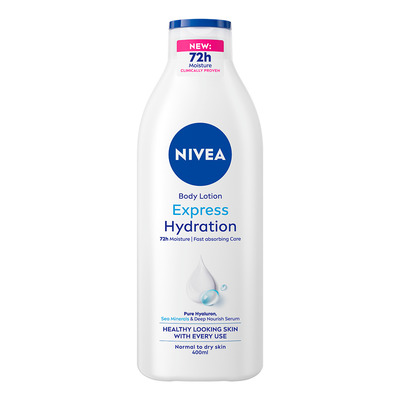 Nivea Express Hydration Body Lotion er en dybt fugtgivende bodylotion, som fugter huden i op til 48 timer. Den er beriget med Niveas Deep Moisture Serum og virker ikke klæbende på huden. Bodylotionen absorberes hurtigt i huden og efterlader huden fugtet og plejet. Den er velegnet til alle hudtyper også tør hud. Bodylotionen er desuden dermatologisk testet.