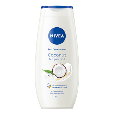 Nivea Creme Coconut Shower er en rensende kropssæbe, der skånsomt renser og plejer huden. Shower gelen er beriget med jojobaolie og har en skøn duft af kokosnød. Kropssæben beskytter mod udtørring og efterlader huden ren og frisk. Denne shower gel er velegnet til alle hudtyper og er desuden dermatologisk testet.