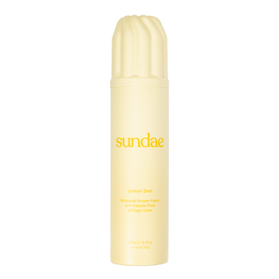 Sundae Whipped Shower Foam Lemon Zest er en luftig kropsvask med duftnoter af citronblomst, frisk citronskal og muskblomst. Den cremede mousse renser huden skånsomt og tilfører fugt, hvilket gør den velegnet til både tør og sensitiv hud. Kropsvasken er vegansk, australsk fremstillet og uden alkohol, parabener og sulfater. Den efterlader huden ren og blød med en langvarig frisk citrusduft, som giver en opkvikkende oplevelse under bruseren.