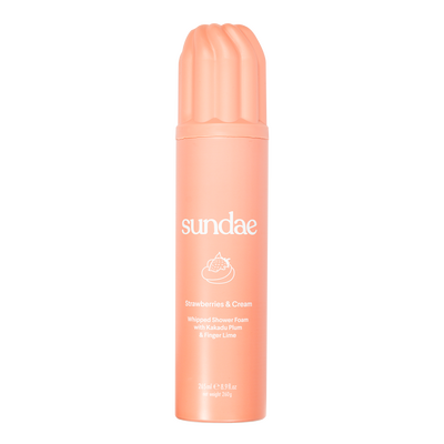 Sundae Whipped Shower Foam Strawberries & Cream er en skummende kropssæbe til alle hudtyper med en blød og sød duft. Skummet indeholder kakadu plum, som er rig på C-vitamin og hjælper med at lysne huden og modvirke tidlige alderstegn. Finger lime tilfører naturlige AHA, som eksfolierer nænsomt og fremmer en mere jævn og glat hudstruktur.