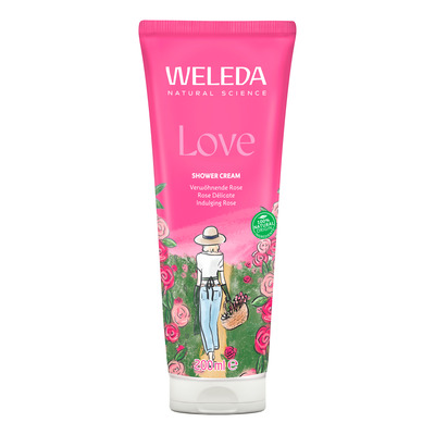Aroma Shower Love fra Weleda er en naturlig showergel udviklet specielt til daglig pleje. Med skønne, blomstrende duftnoter af jasmin, damaskrose og ylang-ylang forkæles sanserne med afslappende aromaterapi, mens indholdet af fermenteret sukker og solsikkeolie skånsomt renser huden og efterlader den silkeblød.