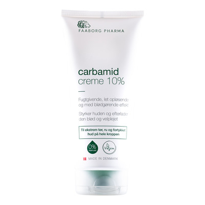 Denne carbamid creme fra Faaborg Pharma er fremstillet til at pleje og nære ekstrem tør, ru og hård hud. Den fedtrige creme virker blødgørende, fugtbevarende og styrkende på huden, så huden efterlades glat, smidig og velplejet. Cremen er baseret på carbamid - også kendt som urea - som har en opblødende effekt på huden. Stoffet er et af kroppens egne naturlige stoffer, og virker derfor naturligt på hård og tør hud.