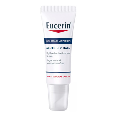Eucerin Acute Lip Balm indeholder en unik kombination af aktive ingredienser, der effektivt lindrer tørre, sprukne og irriterede læber. Den beroligende formel reducerer rødme og irritation, samtidig med at den fremmer hudens naturlige regenerering. Læberne efterlades fugtede, bløde og glatte. Produktet er særligt velegnet til hudområder omkring munden og kan også anvendes ved lip-lick eksem eller tørhed forårsaget af medicinsk behandling.