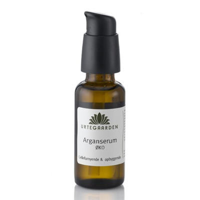 Urtegaarden Økologisk Arganserum virker forebyggende på alderstegn og hjælper med at holde huden spændstig.