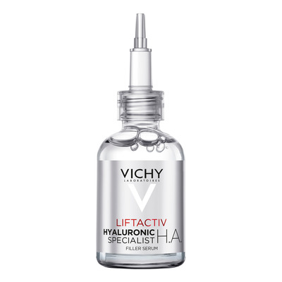 Vichy Liftactiv Hyaluronic Specialist H.A. Filler Serum er en kraftfuld anti-aging serum, der målretter og udfylder rynker og fine linjer. Dette serum er beriget med højkoncentreret hyaluronsyre og Vichys beroligende termiske kildevand, som tilsammen arbejder på at genopbygge hudens volumen og hydrering. Resultatet er en synligt glattere og mere fyldig hud med en ungdommelig glød. Med sin lette, hurtigt absorberende formel, er serummet perfekt til daglig brug og kan anvendes af alle hudtyper.
