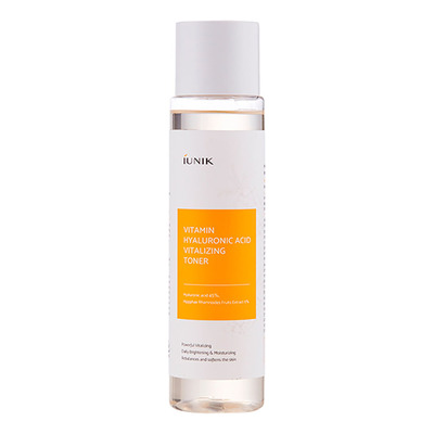 Iunik Vitamin Hyaluronic Acid Vitalizing Toner tilfører huden fugt, glød og antioxidanter med dens høje indhold af aktive ingredienser, herunder havtorn-ekstrakt, hyaluronsyre, niacinamid og en patenteret sammensætning af urteekstrakter. Denne toner passer til alle hudtyper, men er særligt velegnet til dem, der ønsker ekstra fugt.