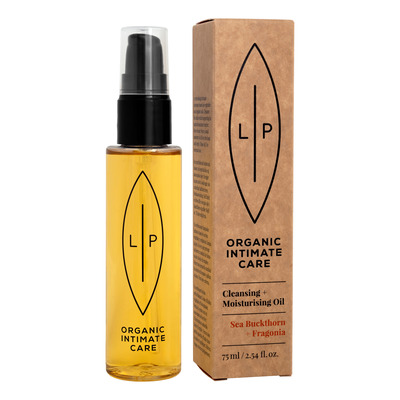 Lip Intimate Care Sea Buckthorn + Fragonia Cleansing + Moisturising Oil er en plantebaseret intimolie formuleret med certificerede økologiske ingredienser. Olien renser huden og understøtter hudens naturlige fugtbarriere. Den indeholder CO₂-ekstraheret havtornfrugtkød, der er rig på omega-7, samt fragoniaolie med antibakterielle egenskaber.