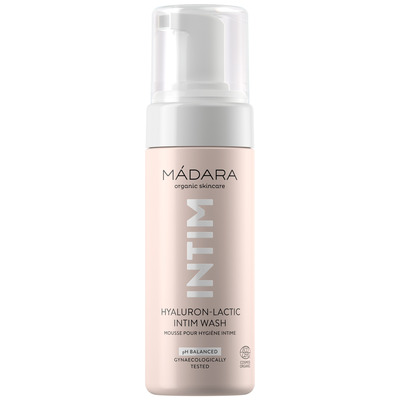 Hvis du er på udkig efter en ny, mild intimsæbe, er denne fra Mádara Organic Skincare et godt valg. Intimsæben er baseret på nøgleingredienserne hyaluronsyre og mælkesyre, som hjælper med at bevare en god hygiejne i intimområdet. Hyaluronsyre er en kendt fugtgiver, som i Mádara Intim Hyaluron-Lactic Intim Wash sørger for at vedligeholde en velfugtet hud. Desuden vil indholdet af mælkesyre virke balancerende på pH-værdien i dit intimområde. Produktet er cruelty-free, vegansk og formuleret uden sæbe.