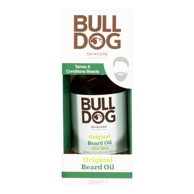 Bulldog Original Beard Oil er en plejende skægolie med aloe vera og naturlige olier, der blødgør og giver glans