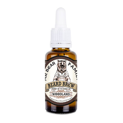 Mr. Bear Beard Brew Oil Woodland er en skægolie lavet af 100% naturlige olier. Den blødgør og plejer huden, forhindrer irritationer og rødme og modvirker filtrer.