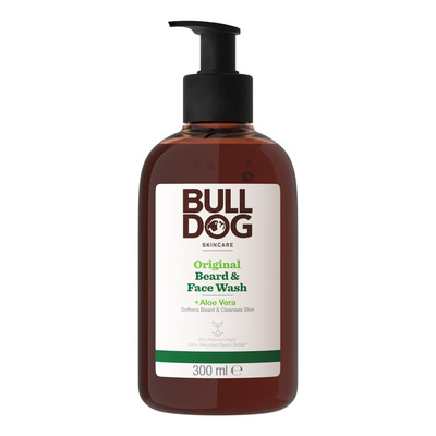 Bulldog Original Beard & Face Wash er en 2-i-1 skæg- og ansigtsvask fremstillet med 92% naturlige ingredienser, herunder aloe vera der er kendt for sine fugtgivende og beroligende egenskaber. Vasker snavs og olie effektivt væk og efterlader skægget blødere, mens huden renses skånsomt uden at udtørre. Velegnet til alle skæg- og hårtyper. Duften er den kendte Original-signaturduft – en 100% naturlig blanding af æteriske olier.