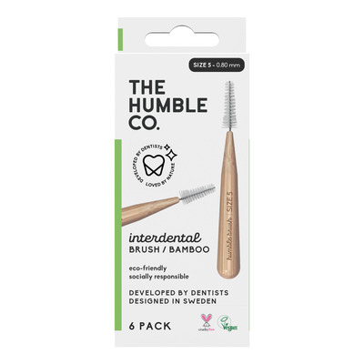 Mellemrumsbørsten fra The Humble Co. er udviklet speciet til at supplere din daglige tandhygiejne. Den er fremstillet af bæredygtig bambus med børster af nylon-6 beklædt med vegansk voks for optimalt glid. Denne variant kommer i størrelsen 5 med farvekode grøn.