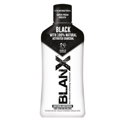 Ønsker du at fjerne og fange plak samtidig med, at du får hvidere og mere skinnende tænder? Mundskyllen fra BlanX fungerer som enhver anden mundskyl, som du kan bruge både morgen og aften - den er blot lavet på aktivt kul, hvor kulstofpartiklerne fjerner og fanger plak samt andre urenheder, der kan forårsage misfarvning. Mundskyllen genopretter altså dine tænders naturlige hvidhed og indeholder arktiske lav, blødt silica og fluorsalte, som bidrager til en dybderensende og blegende virkning.