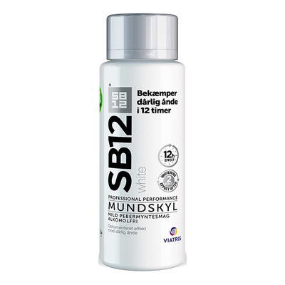 SB12 White Mundskyl er designet til at give en dobbelt fordel: frisk ånde og hvidere tænder. Denne 500 ml. mundskyl har en klinisk dokumenteret effekt, der varer i 12 timer. Ved at bruge SB12 White to gange dagligt, vil du opleve synlige resultater med hvidere tænder på bare 14 dage samt en frisk ånde.