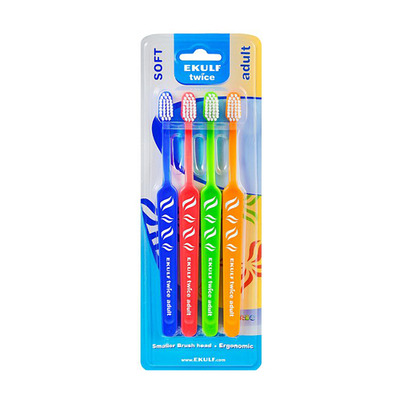 Ekulf Twice Adult er en tandbørste velegnet til alle over 12 år. Tandbørsten er tilpasset til størrelsen af tanden, alderen og mund.