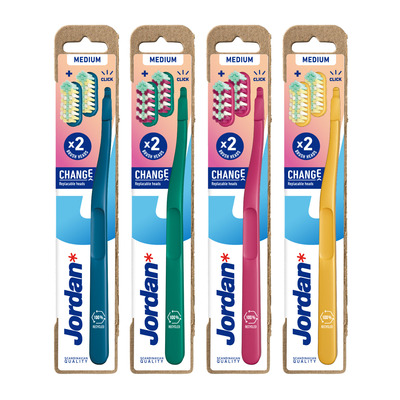 Jordan Change 2 heads + 1 handle - Medium er en tandbørste, der er med til at reducere plastforbruget ved at genbruge