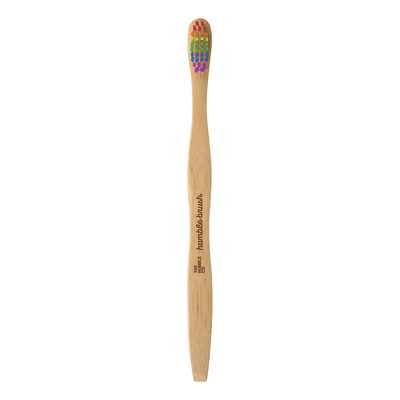 Bæredygtig bambustandbørste fra The Humble Co. med børstehår i smukke regnbuefarver
