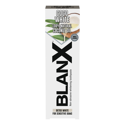 BlanX Coco White Tandpasta er en fusion af naturens reneste ingredienser til at sikre et sundt og hvidt smil. Denne tandblegningspasta er beriget med 100% naturlig kokosolie, der er anerkendt for sine plakfjernende og giftstofbeskyttende egenskaber. Tandpasten sikrer en varig blegning af tænderne, uden at gå på kompromis med mundens sundhed. Specielt velegnet til følsomt tandkød og tilbyder anti-inflammatoriske fordele og en beroligende effekt.