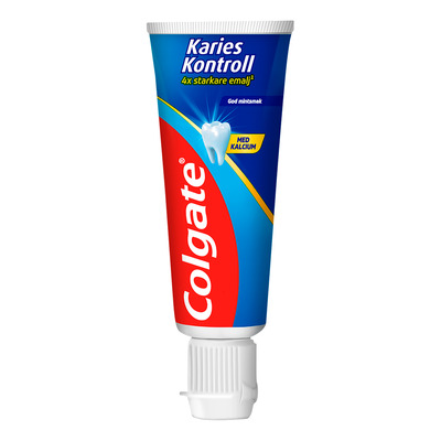 Colgate Karies Kontrol Tandpasta anvender overlegen kariesbekæmpende teknologi, der styrker tænderne og neutraliserer syredannende karies, før den svækker emaljen. Tandpastaen bruger et dobbelt kariesbekæmpende system med fluor og arginin, som giver 4x emaljeforstærkende effekt og beskytter mod karies. Den friske originale mintsmag opfrisker din ånde og efterlader munden med en ren og frisk følelse efter hver børstning.
