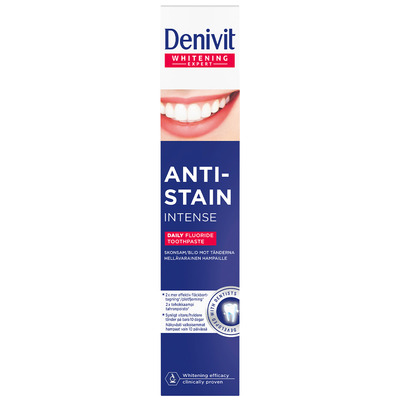 Børst tænderne 2 gange dagligt i 2-3 minutter med Denivit Anti-Stain Intensive.