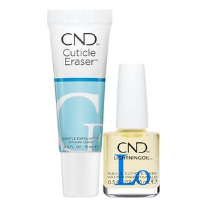 CND Nail & Cuticle Couple Kit indeholder også CND Cuticle Eraser, en skånsom AHA-behandling, der eksfolierer og blødgør neglebåndene. Kombinationen af de to produkter reducerer synlige neglerødder og efterlader hænderne med et mere ensartet og velplejet udtryk. Sættet er velegnet til daglig pleje.