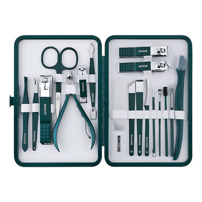 18-i-1 Manicure / Grooming Kit Mørkegrøn - 18 stk.