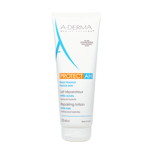 Protect AH Aftersun Lotion fra A-Derma er en genopbyggende lotion med blandt andet hyaluronsyre, som plejer huden efter en dag i solen. Denne aftersun er specielt udviklet til sart og sensitiv hud, der er særligt udsat for solens skadelige stråler. Protect AH Aftersun Lotion genopbygger hudens naturlige barriere, plejer huden i dybden og har en kølende egenskab på din hud.