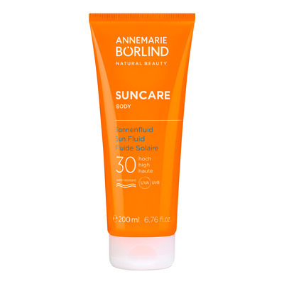 Annemarie Börlind Suncare Body Sun Fluid SPF 30 beskytter huden effektivt mod skadelige UV-stråler med et højt niveau af solbeskyttelse. Produktet indeholder et professionelt UVA/UVB-filtersystem, der hjælper med at forebygge solskader. Den lette og hurtigt absorberende konsistens gør den behagelig at anvende, uden at huden føles fedtet. Cremen efterlader en frisk duft og er velegnet til daglig brug på kroppen i solen.