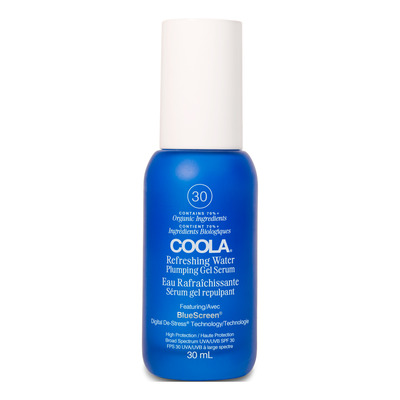 Coola Refreshing Water Plumping Gel Serum SPF30 er et vandbaseret serum, der kombinerer intensiv fugtpleje med bredspektret SPF30. Formuleringen er udviklet med Water-Gel Technology, som giver en kølende og let fornemmelse på huden. Den indeholder over 70% økologiske ingredienser og er ideel til daglig brug på alle hudtyper. Med BlueScreen-Digital De-Stress-Technology beskytter serummet effektivt mod blåt lys, infrarød stråling og forurening.