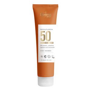 Derma Supreme Sun Lotion SPF50 er en plejende og silkeblød sollotion med vandfast solfaktor 30, der beskytter huden mod UVA-, UVB-stråler og blue light. Den lette lotion absorberes hurtigt uden at fedte eller hvidte og giver huden fugt og pleje under soleksponering. Solcremen er velegnet til daglig brug og til hele familien, når huden har behov for effektiv og skånsom solbeskyttelse.