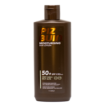 Piz Buin Moisturising Skin Lotion er en let solcreme, der hurtigt trænger ned i huden uden at fedte på huden eller efterlade pletter. Produktet er tilsat vandfaste solfiltre, som både giver høj beskyttelse mod UVA- og UVB stråling, uanset hvad du laver. Desuden er den tilsat fugtgivende ingredienser, som sikrer at huden ikke tørrer hud og irriteres. Cremen er nem at smøre på, og er ideel til når du skal opholde dig i langvarig og stærk sol.