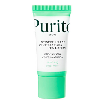 Purito SEOUL Wonder Releaf Centella Daily Sun Lotion tilbyder SPF50+ PA++++ solbeskyttelse med en let tekstur, der er ideel til sensitiv hud. Den indeholder koreansk Centella Asiatica, som beroliger huden, brun algeekstrakt med antioxiderende egenskaber og hyaluronsyre, der opretholder hudens fugtighed.