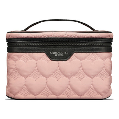 Gillian Jones Beautyboks fra Urban Travel linjen kombinerer bæredygtighed med innovativt design, der er fremstillet af 100% genanvendt plastik og designet til at minimere CO2-aftrykket. Denne rosa beautyboks prydet med hjerter er ikke blot funktionel, men også stilren. Den kan foldes helt sammen, hvilket gør den ekstremt praktisk at transportere og opbevare, når den ikke er i brug.