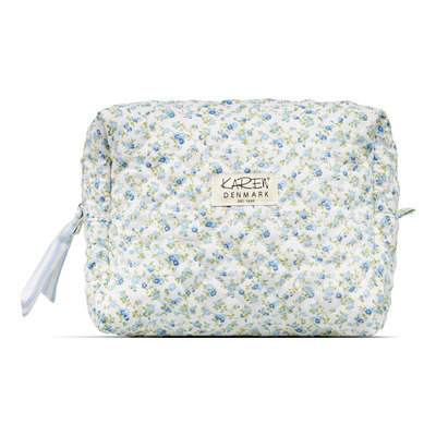 Karen Toilettaske i blå småblomstret quilt er rummelig, blød og ideel til rejsebrug