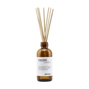 Skab en skøn atmosfære i hjemmet med de velduftende duftfriskere fra Meraki. De består af glasflasker med duftpinde i aromatisk olie, som lader en mild og sanselig duft brede sig i ethvert rum. Denne variant, Nordic Pine, har en mild og knitrende frisk duft inspireret af de majestætiske, nordiske fyrreskove.