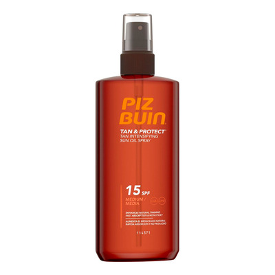 Piz Buin Tan & Protect Accelerating Oil Spray SPF15 er en hurtigabsorberende og ikke fedtet olie. Olien er velegent som solbeskyttelse af kroppen, er sved og vandresistent og er velegnet til strand og badning på solferien. Indeholder vitamin E-antioxidant, der hjælper med at beskytte mod for tidlig ældning af huden.