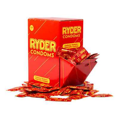 Vælg Ryder Kondomer for en kombination af kvalitet og komfort. Disse kondomer har et standarddesign og en størrelse, der gør dem passende for de fleste mænd. Designet med en tætsluttende ende for ekstra plads øverst, sikrer disse kondomer både komfort og sikkerhed under samleje. Hvert kondom er forsynet med smøremiddel for en glidende og problemfri penetration.