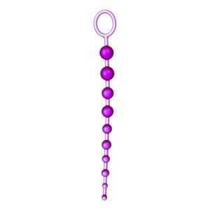Baseks analkæde lang kan bruges alene eller med en partner. Kuglerne kan trækkes langsomt ud lige før klimaks for en intens oplevelse. Den er fremstillet i farverigt PVC og har en praktisk ring i enden, der sikrer nem og sikker udtagning. Brug altid vandbaseret glidecreme for maksimal komfort.