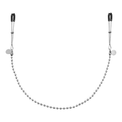 Obaie Justerbare Brystklemmer med Kæde er fremstillet i nikkelfri jern og har et flot gunmetal look. Gummibelægningen på klemmerne sikrer komfort under brug, samtidig med at presset stadig føles tydeligt. De egner sig perfekt til både sololeg og pirrende dominanslege med en partner.