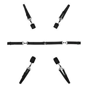En lang, justerbar rem er fastgjort til den ene side af taljebæltet og føres under sengen eller madrassen, før den fastgøres på den anden side. Det giver en stabil og sikker forankring under brug. Sættet er velegnet til både begyndere og mere erfarne brugere, der ønsker et enkelt og effektivt redskab til bondage i sengen.