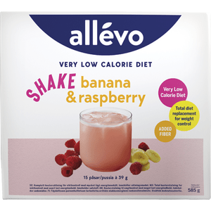 Allévo Shake Banana & Raspberry VLCD er perfekt kosterstatning til vægtkontrol. Shaken har et meget lavt energiindhold, samtidig med den giver dig de tilstrækkelige mængder af næringsstoffer. Du kan erstatte alle måltider med Allévo Shake ved at indtage 5 portioner hver dag, som en kickstart i op til 8 uger.