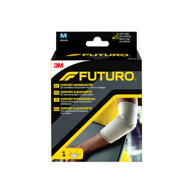 Futuro Comfort Lift albuebandager er designet til at yde sikker støtte til svage, stive eller skadede albuer. Bandagen kan benyttes forebyggende, ved akutte og/eller kroniske ledsmerter, samt til støtte af svagt beskadigede ledbånd. Futuro Comfort Lift albuebandager er fremstillet af et åndbart dual-stretch Power Knit komfort materiale. Den er anatomisk udformet for bedre pasform og beskyttelse.