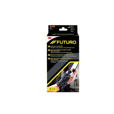 Futuro Tommelstøtte giver støtte til svage, smertefulde og ømme tommelfingre. Den stabiliserer de nederste tommelfingerled, som ellers ofte bliver belastet i forbindelse med fx sms og computerspil. Den kan også med fordel bruges ved symptomer på gigt.