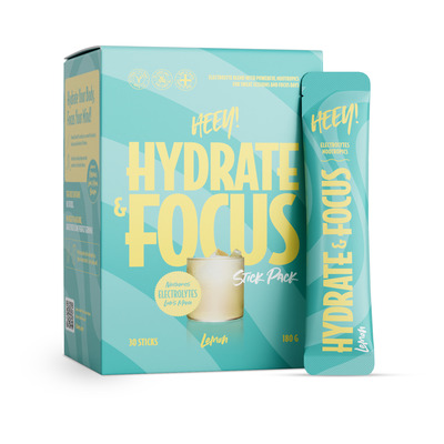 Heey! Hydrate & Focus indeholder desuden naturlige planteekstrakter fra lion’s mane, rosenrod og brahmi, som ofte anvendes i kosttilskud. Pulveret er tilsat naturligt frugtpulver og har en frisk smag af citron. Stick Pack-formatet med 30 x 6 gram gør det nemt at tage med og blande i en flaske vand – ideelt til brug i hverdagen, på arbejdet eller under træning.