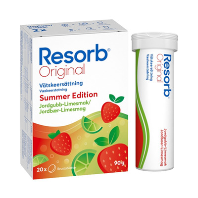 Resorb Original Jordbær-Lime er brusetabletter med elektrolytter og god smag