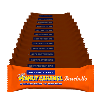 Barebells Salted Peanut Caramel er en lækker og mættende proteinbar med 16 g protein, der kombinerer den klassiske smag af saltede peanuts og blød karamel overtrukket med cremet mælkechokolade. En smagsoplevelse, der minder om chokoladebarer - men uden tilsat sukker.