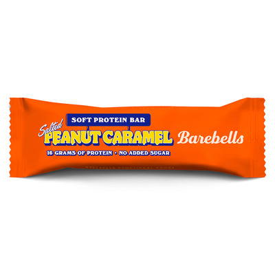 Barebells Salted Peanut Caramel er en lækker og mættende proteinbar med 16 g protein, der kombinerer den klassiske smag af saltede peanuts og blød karamel overtrukket med cremet mælkechokolade. En smagsoplevelse, der minder om chokoladebarer - men uden tilsat sukker.